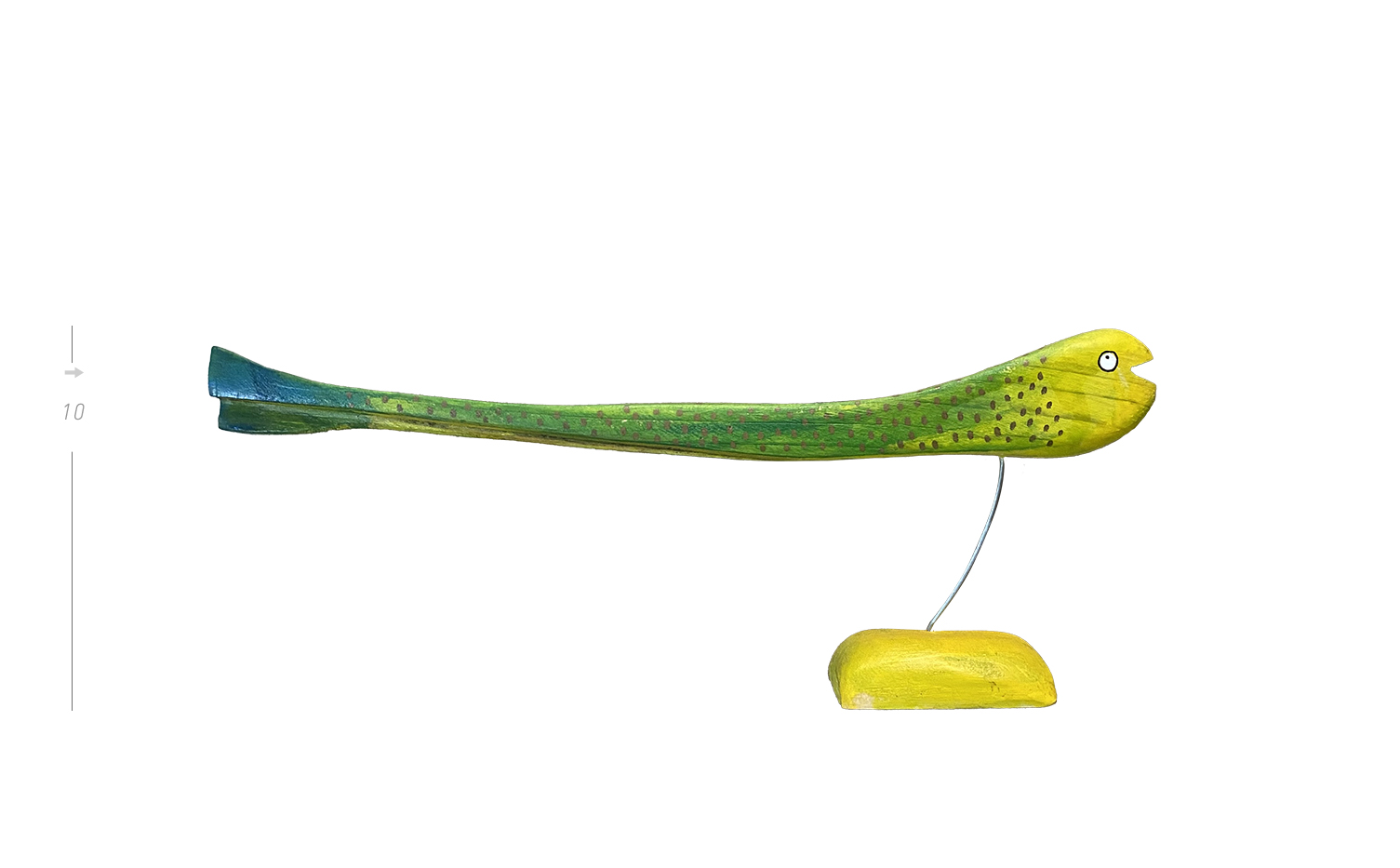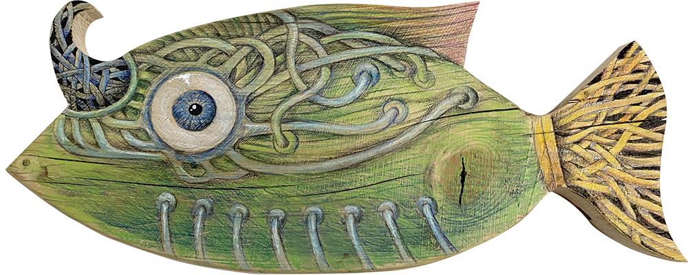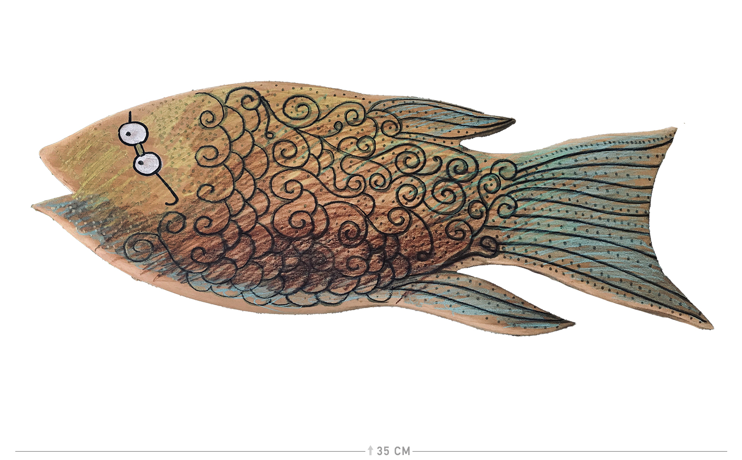 Cada tabla sugiere un pez, no hay plan, solo intuición. El gesto viene luego, corriendo atrás de la sierra y la lija, mientras los colores se inventan solos y las lineas juegan a su antojo.